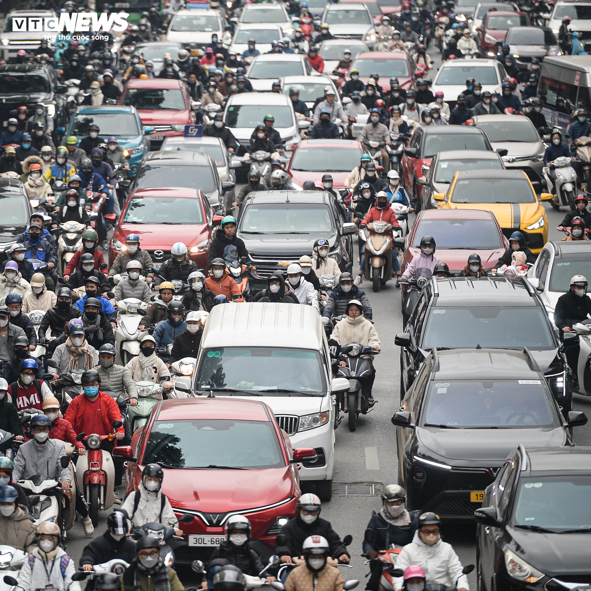 Dòng xe chen chúc khiến việc di chuyển của người dân gặp nhiều khó khăn trong buổi sáng đi làm đầu tiên của năm 2026.