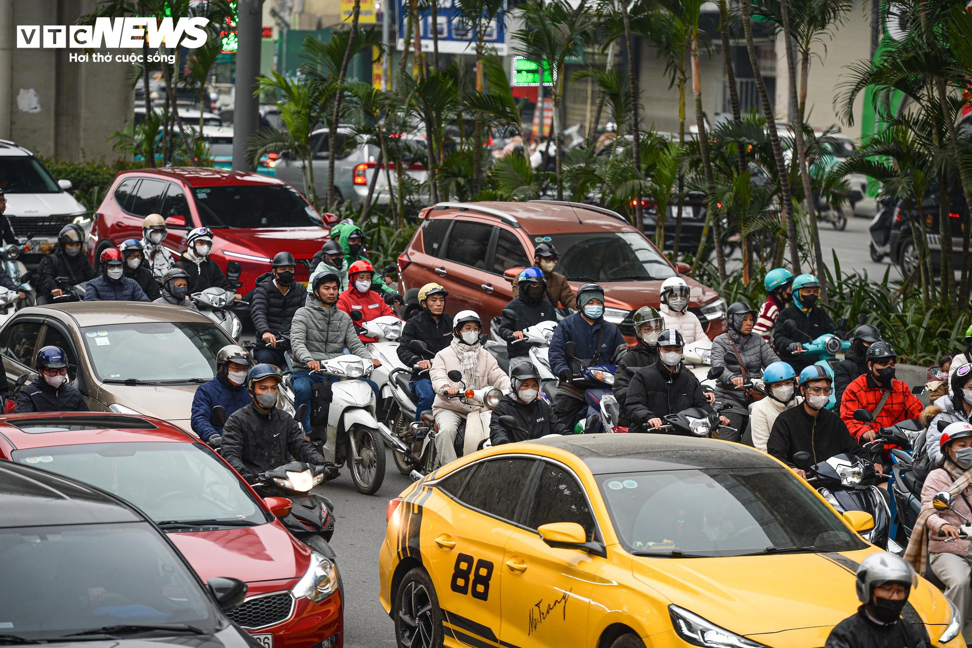Ghi nhận của PV Báo Điện tử VTC News, trên trục đường Nguyễn Trãi hướng đi Tây Sơn, mật độ phương tiện tăng nhanh từ sáng sớm.