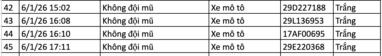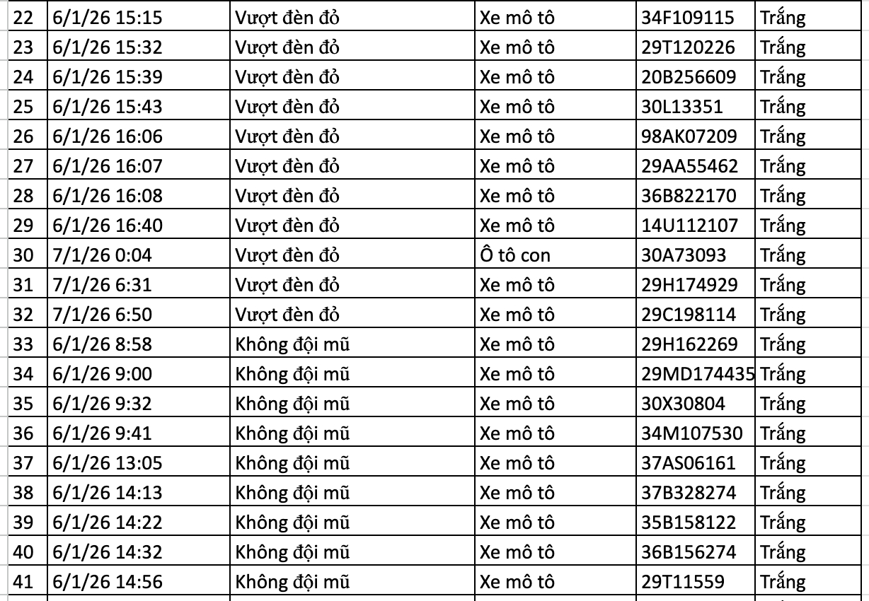 Theo dữ liệu trích xuất từ 12h ngày 6/1 đến 12h ngày 7/1/2026, tình hình trật tự an toàn giao thông ghi nhận những biến động mới. Sau ngày 6/1 với số vi phạm giảm sâu (17 ca), thì đến ngày 7/1, con số này đã tăng lên 43 trường hợp vượt đèn đỏ.