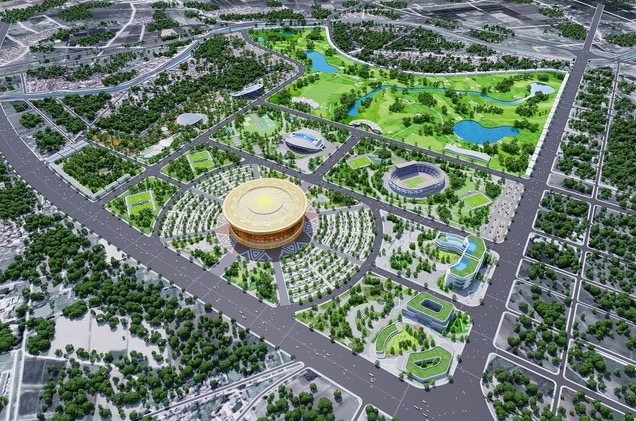 Điểm nhấn là Sân vận động Trống Đồng triển khai trên diện tích 73,3 ha, sức chứa lên đến 135.000 chỗ ngồi, được thiết kế là sân vận động đạt chuẩn FIFA có sức chứa và mái che đóng mở tự động lớn nhất thế giới. Dự kiến, sân vận động Trống Đồng sẽ được hoàn thành vào tháng 8/2028.